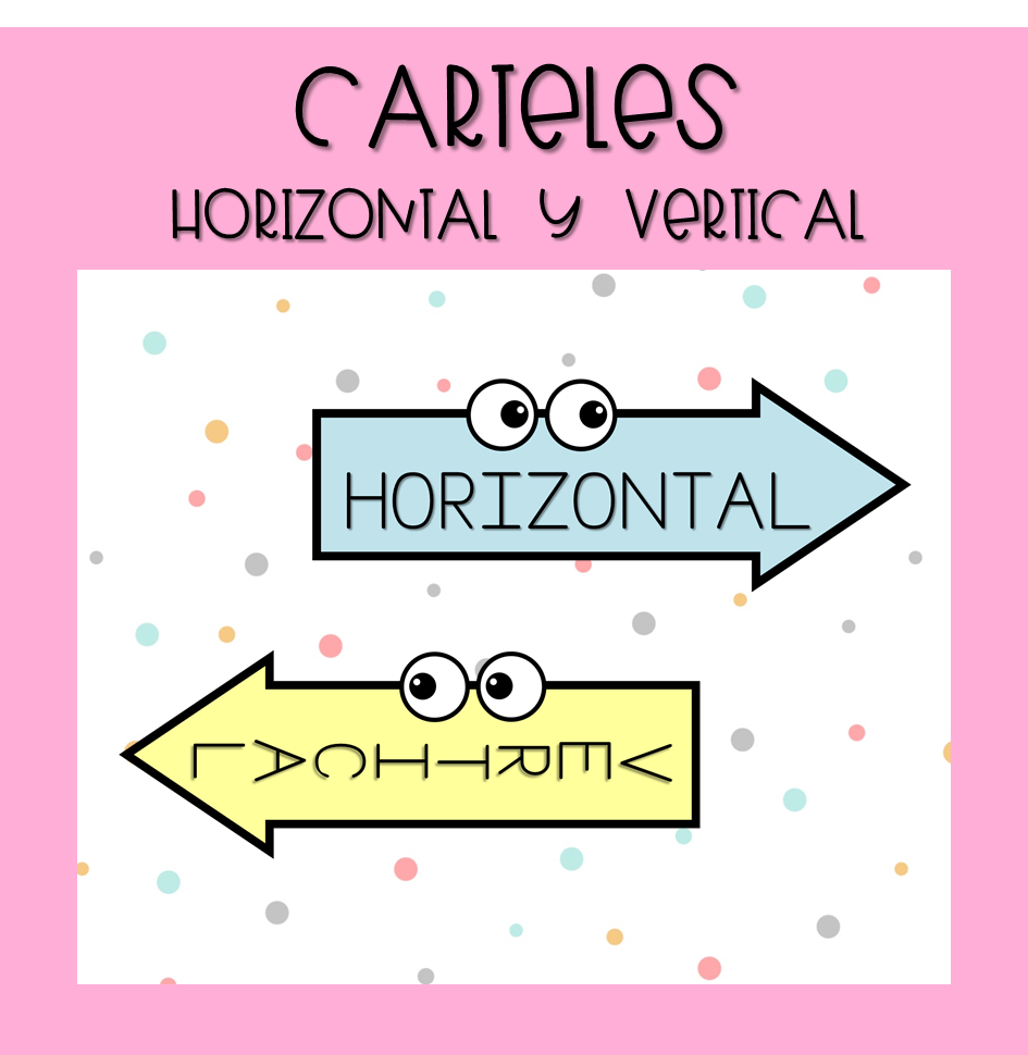 Carteles para la pizarra con las palabras "horizontal" y "vertical".